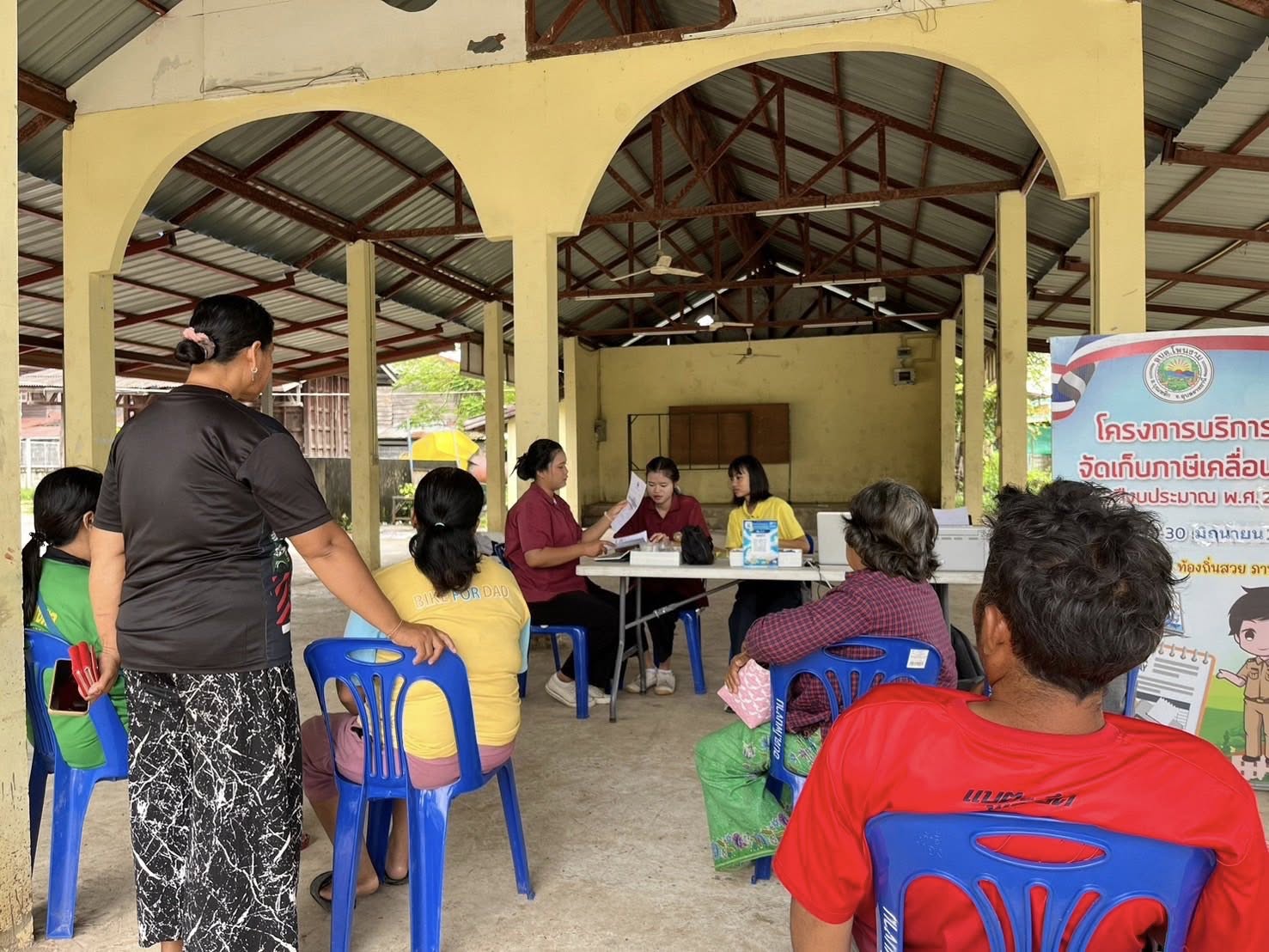 ดร.คุณากร อักษรพรมราช นายกวันที่ 27 สิงหาคม 2568 องค์การบริหารส่วนตำบลโพนงาม มอบหมายให้เจ้าหน้าที่จากองค์การบริหารส่วนตำบลโพนงาม ลงพื้นที่จัดเก็บภาษีนอกสถานที่ ณ ศาลาประชาคมบ้านโนนสูง หมู่ 8