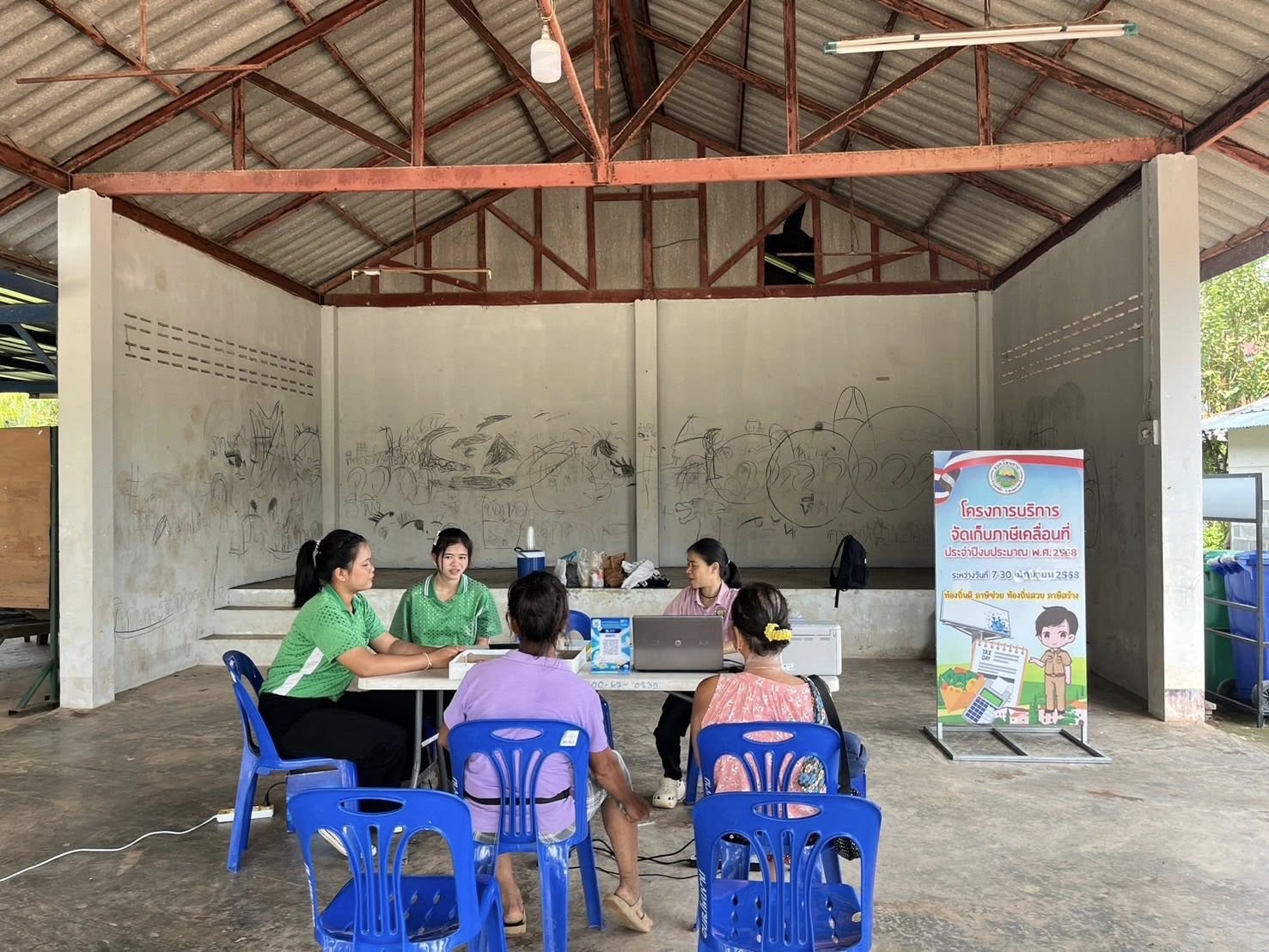 วันที่ 21 สิงหาคม 2568 ดร.คุณากร อักษรพรมราช นายกองค์การบริหารส่วนตำบลโพนงาม มอบหมายให้เจ้าหน้าที่จากองค์การบริหารส่วนตำบลโพนงาม ลงพื้นที่จัดเก็บภาษีนอกสถานที่ ณ ศาลาประชาคมบ้านป่าเตี้ย